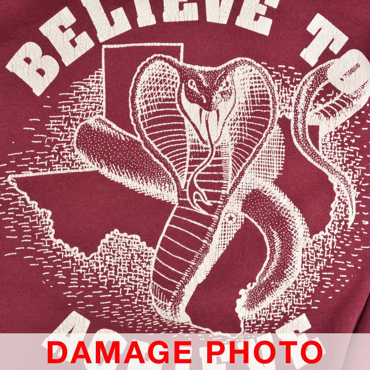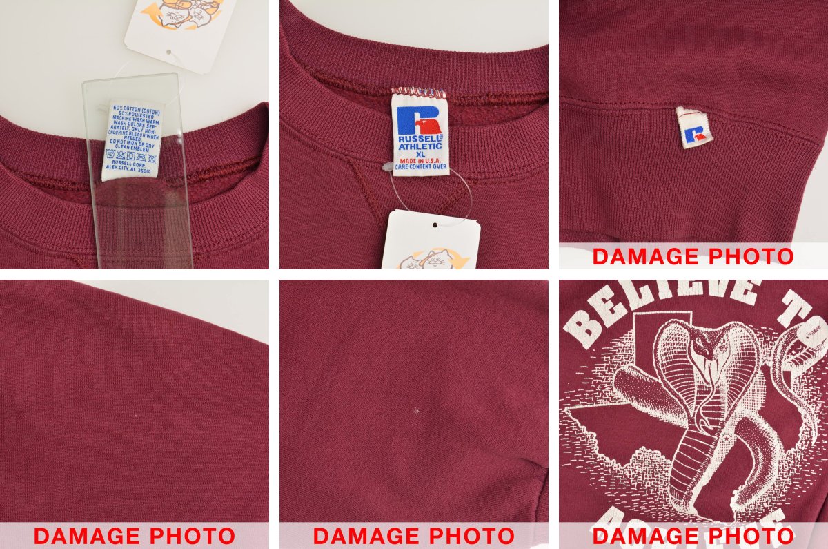 Item InformationATTENTIONダメージについて USED品となりますので、使用感があり、全体的に毛羽立ちや色褪せ、所々に汚れ、裾タグに縫製ミス、プリントにひび割れが見られます。