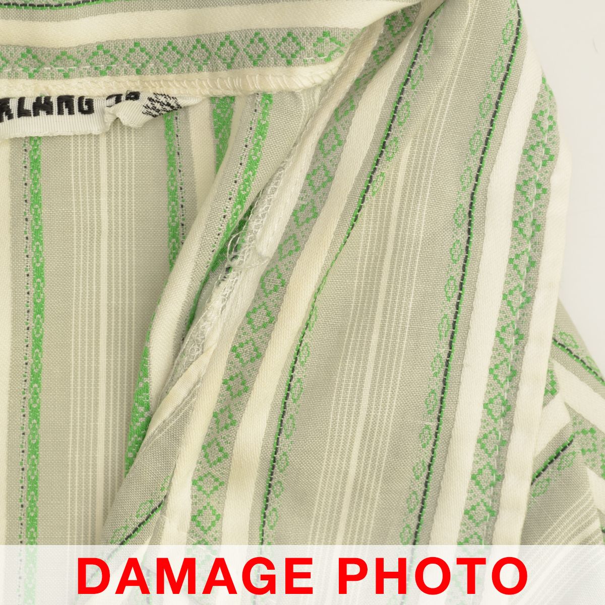 Item InformationATTENTIONダメージについて USED品となりますので、使用感があり、第3・第4ボタン欠損、ネック・袖口裏に汚れ、右袖にほつれ、品質表示タグにほつれが見られます。